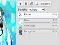 16 Layers with blend modes. (multiply, screen, etc.)